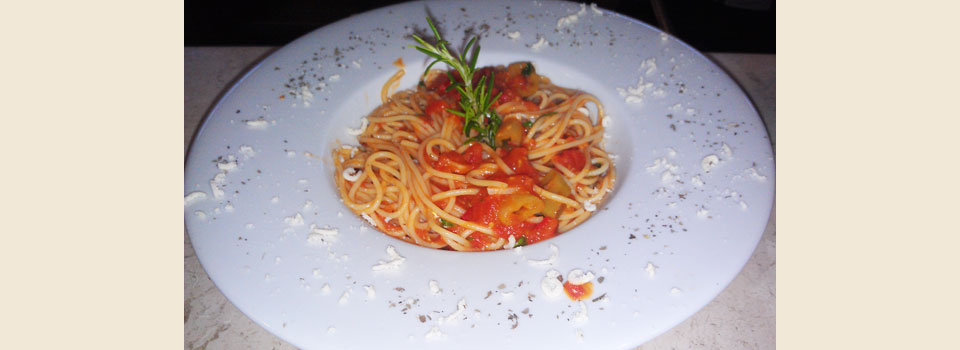 (Penne Pasta, Olive Slices, Capers, Hot Tomato Sauce)