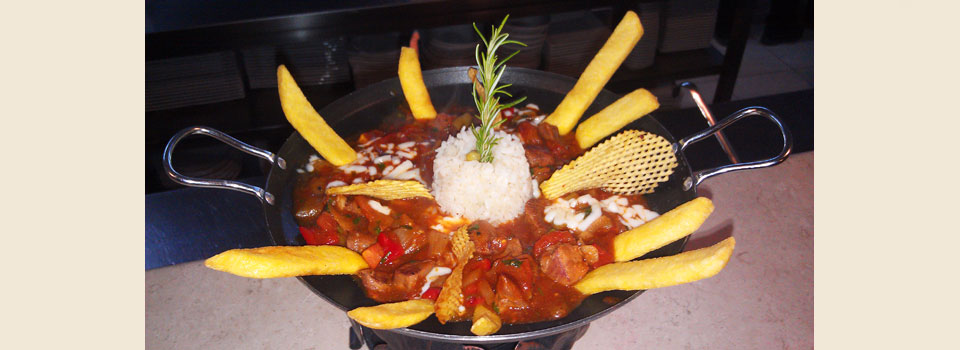 (Julienne Steak Fillet Pieces, Piclet Gherkins, Mushroom, Demi-Glace Sauce, Rice, Potato)